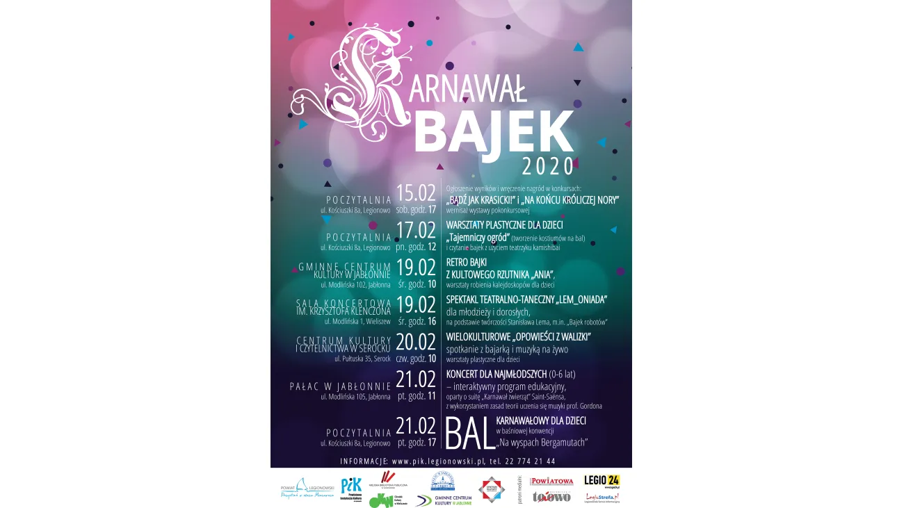 19.02.2020 r. (środa), godz. 10.00, Gminne Centrum Kultury w Jabłonnie (ul. Modlińska 102, Jabłonna)