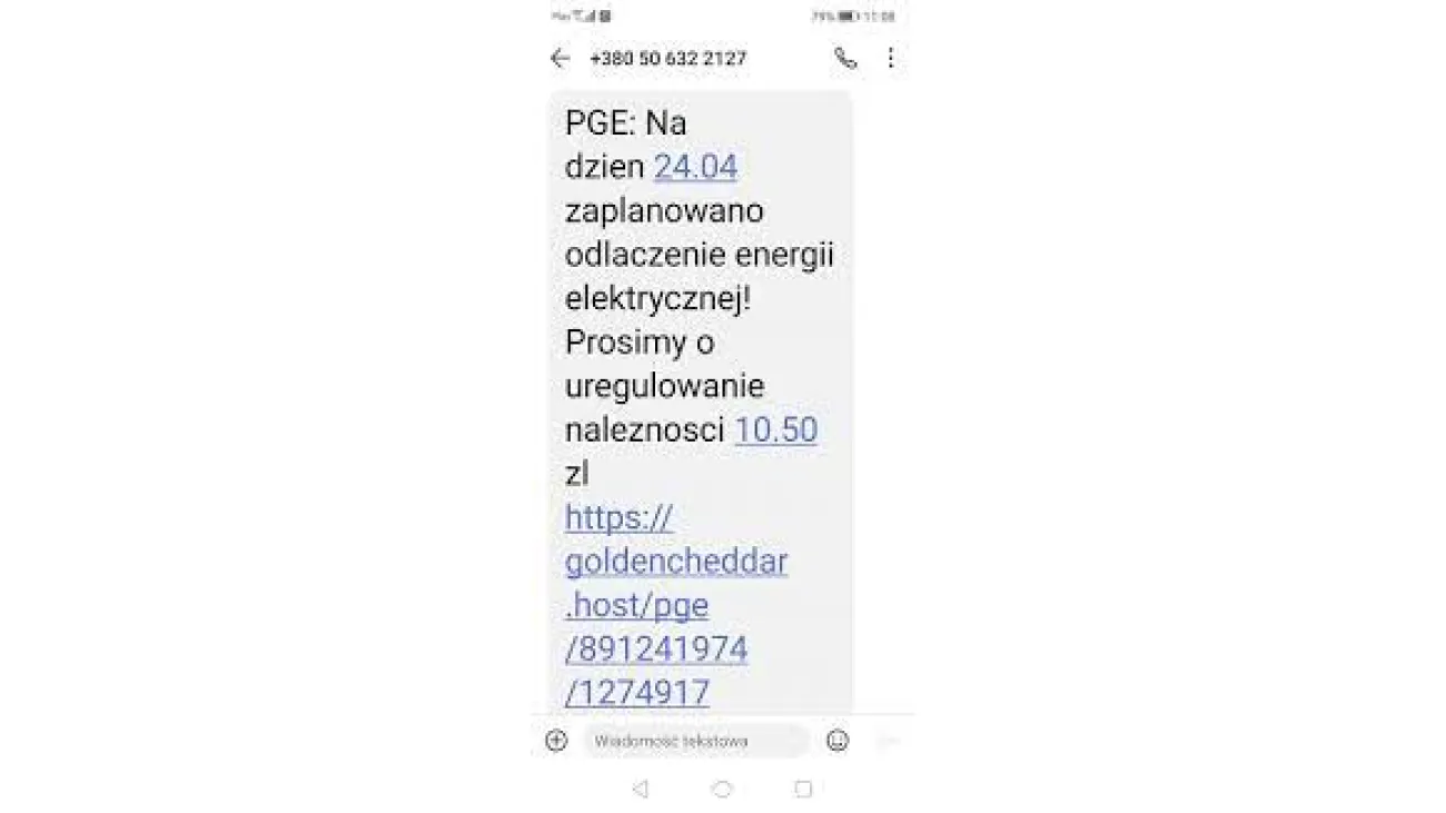Oszuści nie odpuszczają i wykorzystując różne metody działania docierają do osób, które okradają. Jedną z metod jest wysłanie wiadomości sms o planowanym odłączeniu energii elektrycznej wraz z prośbą o uregulowanie należności. Niestety wejście w zawarty w treści wiadomości link może być dla nas zgubne i staniemy się ofiarą oszusta. Bądź ostrożny i zachowaj czujność!