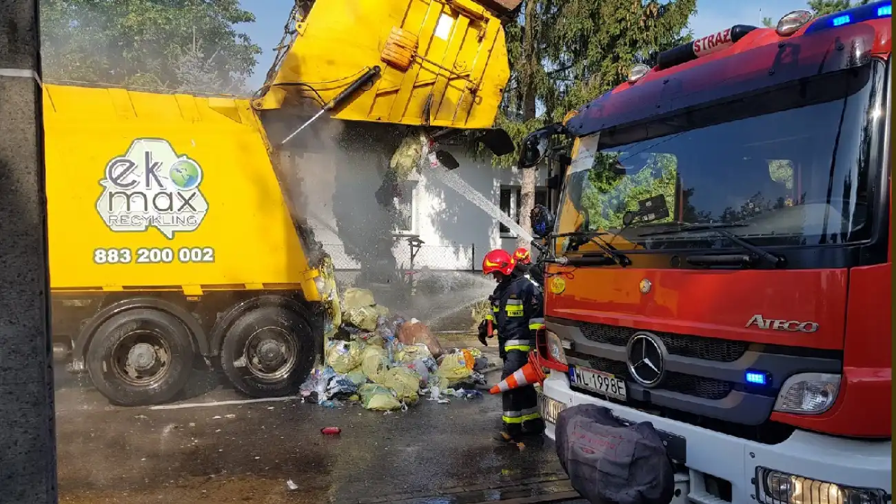 Wczoraj 18.09 podczas odbierania odpadów na terenie Legionowa, zapaliła się zawartość śmieciarki. Kierowca natychmiast wezwał straż pożarną.
