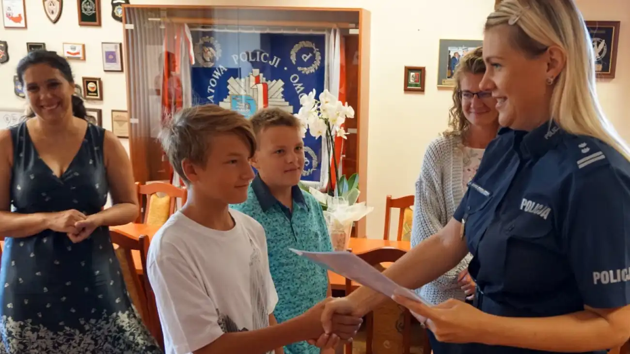 Pod koniec wakacji w legionowskiej komendzie pojawiło się dwóch dwunastolatków. Chłopcy powiedzieli dyżurnemu, że chcą zostawić na komendzie gotówkę, którą znaleźli przy jednej z ulic w Legionowie i proszą o pomoc w ustaleniu właściciela zguby. Policjanci wypytali Szymona Machnio i Mateusza Siporskiego o wszystkie szczegóły niecodziennej historii i przyjęli od nich znalezisko. W białej kopercie znajdowało się kilkaset złotych i pewne informacje, które pomogły policjantom ustalić właściciela gotówki. Okazało się, że jest nim przedsiębiorca, który w Legionowie prowadzi jedną z lodziarni i przypadkowo utracił swoje pieniądze. Zguba trafiła do ucieszonego takim obrotem sprawy właściciela, który zobowiązał się podziękować znalazcom.