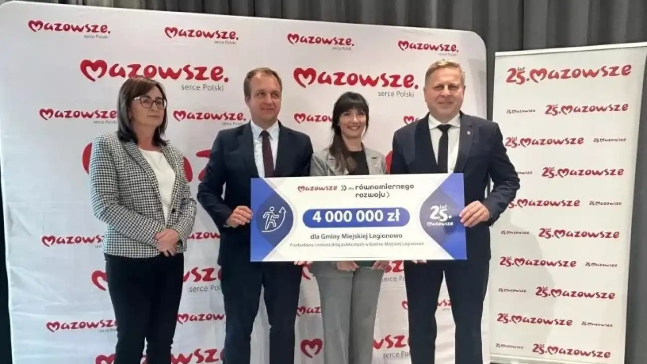 Legionowo otrzymało 4 mln zł dofinansowania na przebudowę i remont siedmiu dróg publicznych. Środki te pochodzą z budżetu województwa mazowieckiego i zostały przyznane w ramach programu „Mazowsze dla równomiernego rozwoju”. Umowę dotyczącą wsparcia podpisali 2 października prezydent Legionowa Bogdan Kiełbasiński oraz skarbnik miasta Marzena Drabek, w obecności Anny Brzezińskiej, reprezentującej Zarząd Województwa mazowieckiego.