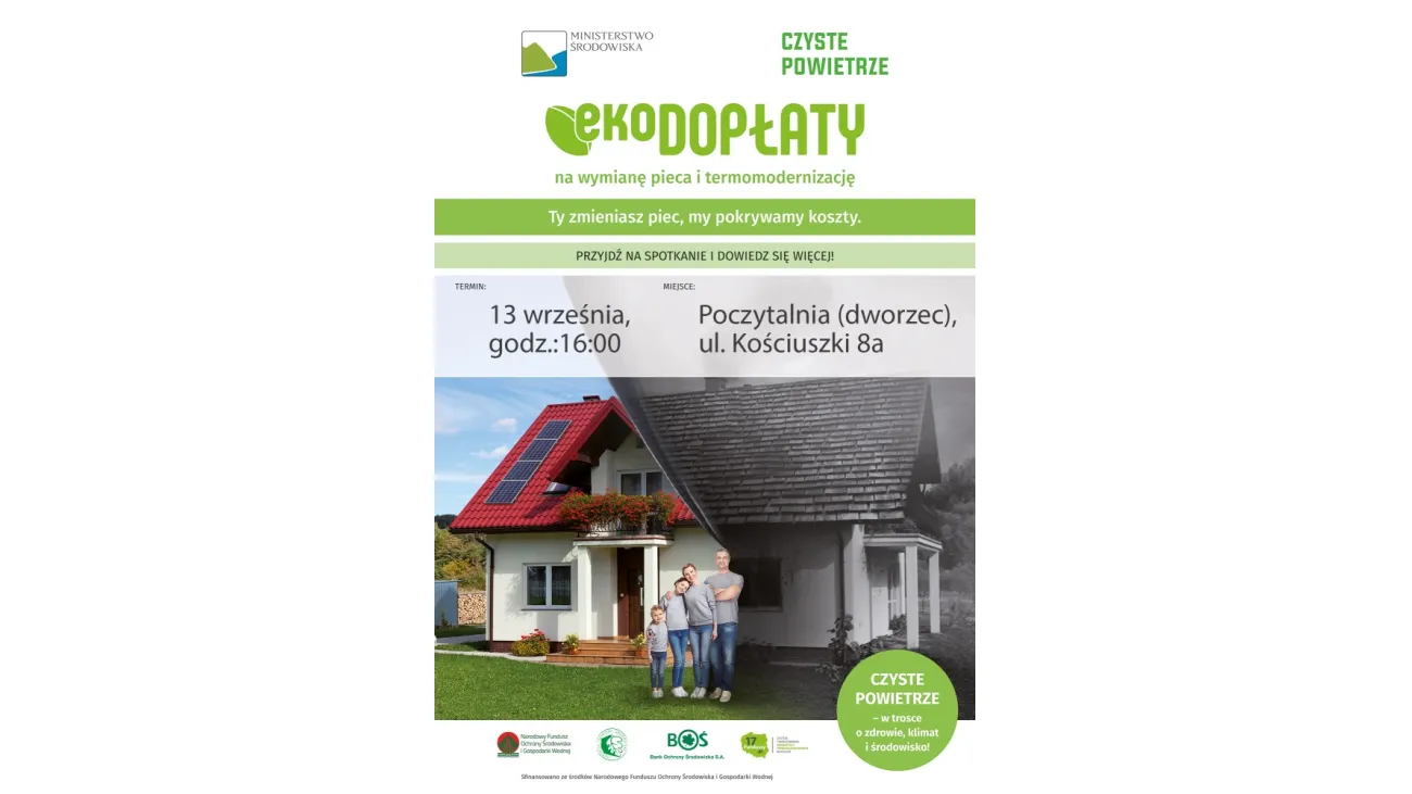 W Legionowie w dniu 13 września o 16.00 w Poczytalni odbędzie się spotkanie z przedstawicielami Ministerstwa Środowiska w ramach rządowego programu "Czyste Powietrze" podczas którego właściciele domów jednorodzinnych dowiedzą się jak ubiegać się o dofinansowanie na termomodernizację budynków, ocieplenie domu, wymianę okien czy na wymianę starego, wysoko-emisyjnego kotła grzewczego.